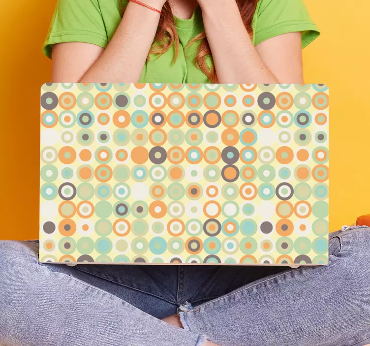 Descubre la magia del vinilo para portátil patrón circular colorido, un diseño que irradia alegría y creatividad. Los círculos vibrantes se entrelazan en un patrón geométrico que recuerda el estilo audaz de los años 70. Este estampado abstracto y divertido no solo es una explosión de color, sino que también transforma tu ordenador portátil en una obra de arte única y personal. ¡Deja que cada mirada a tu dispositivo sea una experiencia llena de energía positiva!