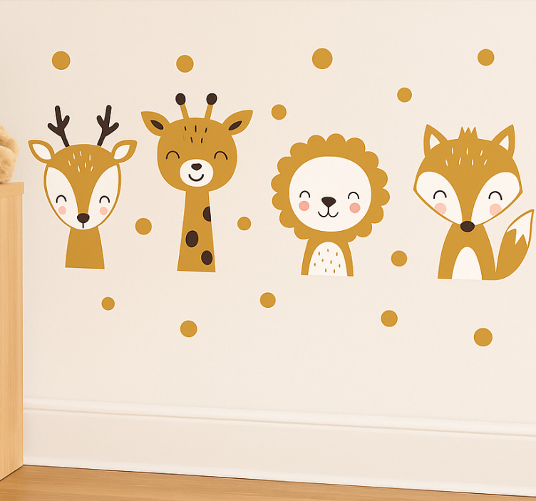 Referencia: A54788Transforma tu espacio con nuestro vinilo pared cabezas de animales adorables, un diseño encantador que presenta cabezas de animales en tonos suaves y amigables, perfectos para darle vida y alegría a cualquier habitación. Este vinilo, con su acabado satinado, no solo es visualmente atractivo, sino que también minimiza los reflejos, permitiendo que los colores resalten de forma vibrante y luminosa.