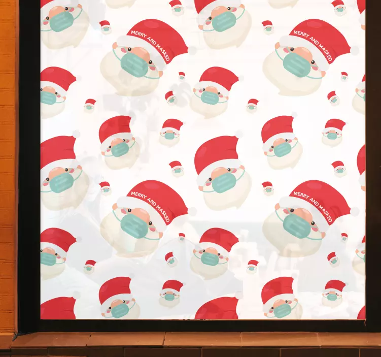 Descubre el fascinante vinilo personajes de santa enmascarados, una increíble lámina decorativa que combina la magia de la Navidad con un diseño festivo y moderno. Este vinilo cuenta con un patrón encantador de Papá Noel con mascarilla facial, ideal para darle un toque único a tu hogar durante las vacaciones. Su estampado vibrante es perfecto para adornar cualquier ventana, creando un ambiente navideño alegre y acogedor.