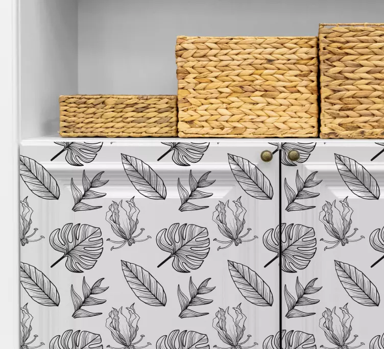 Descubre el Vinilo planta con patrones de hojas, una exquisita lámina decorativa que captura la esencia de la naturaleza. Con un elegante diseño en blanco y negro, este patrón tropical de hojas y plantas aportará un toque fresco y vibrante a tus muebles. Su estilo floral es perfecto para aquellos que desean dar vida a sus espacios, convirtiendo cualquier habitación en un rincón lleno de personalidad y encanto.
