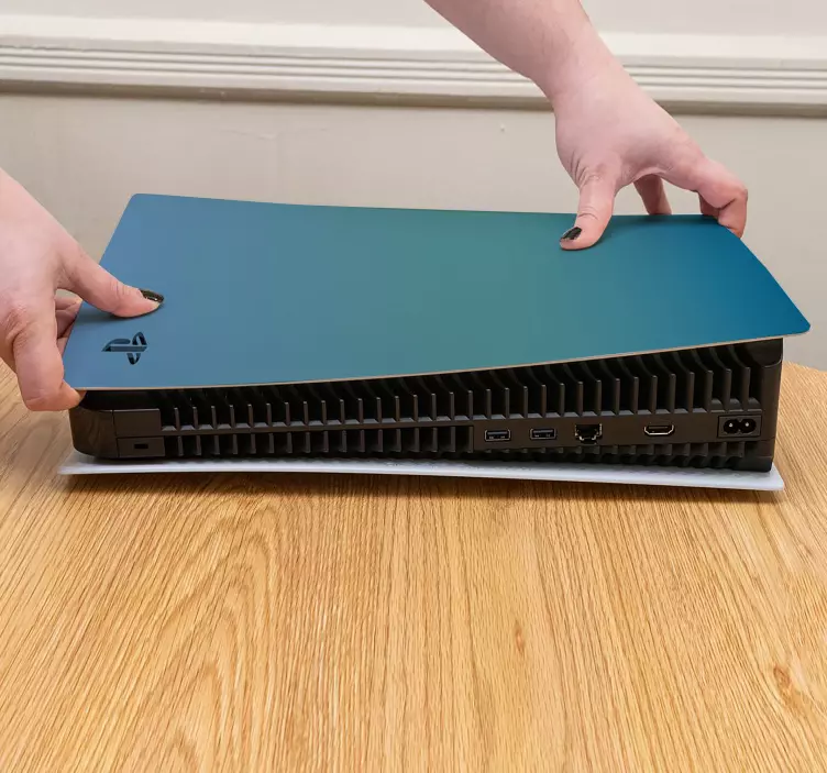 Transforma tu experiencia de juego con nuestro vinilo ps5 protector de consola de juegos. Este diseño gráfico destaca por sus vibrantes tonos azul y verde azulado, creando un impresionante efecto de degradado que hará que tu consola sea el centro de todas las miradas. No solo embellece, sino que también protege tu PlayStation 5 con estilo.