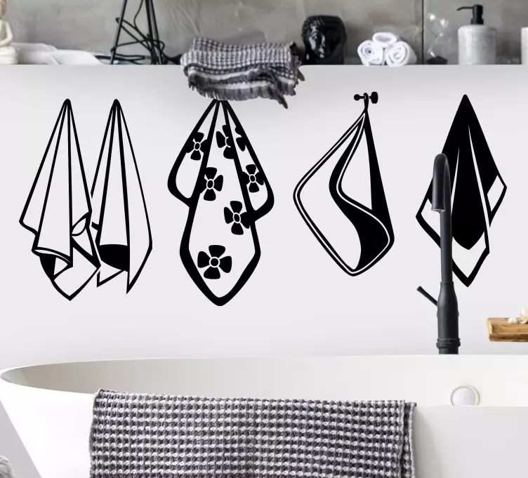 Descubre el Vinilo soporte elegante para toallas, una pieza única que transforma tu baño en un espacio de elegancia y estilo. Este diseño gráfico presenta toallas en siluetas que realzan la decoración de interiores, aportando un toque sofisticado a cualquier ambiente. La fusión de arte y funcionalidad se manifiesta en cada detalle, convirtiendo la simple idea de un soporte en una declaración de estilo.