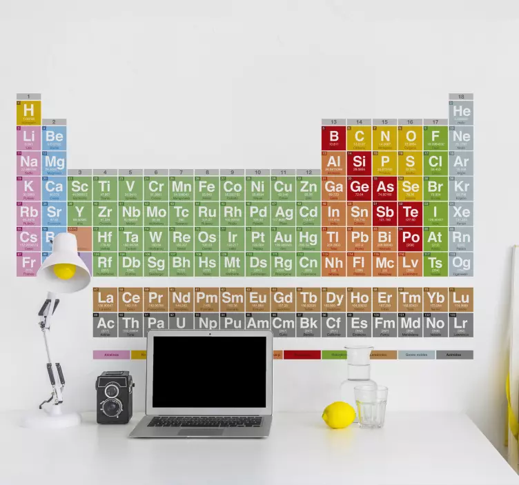 Referencia: A3947Esta fue creada por Dimitri Mendeleyev a medianos del siglo XIX. Escoge el tamaño que mejor se adapte a tus necesidades y hazte con todos estos elementos que quedarán geniales en cualquier superficie lisa. Un vinilo decorativo de fácil aplicación para que no queden burbujas en el interior del que todos podrán aprender solo con observarlo. Combina este vinilo decorativo con otros relacionados con la ciencia y crea paredes alucinantes.